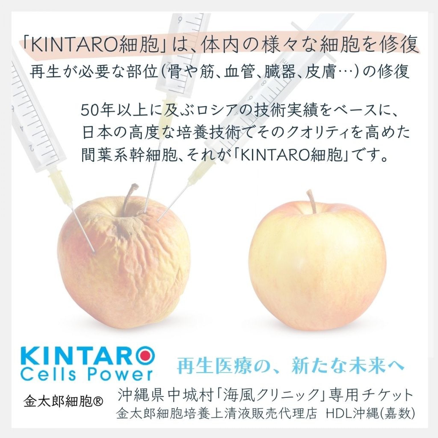 これまで沖縄の人が幹細胞培養上清液を点滴したかったら、飛行機に乗って本土に行く必要がありました。それが2023年末から中城村で受けることが可能になりました。