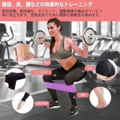 部位、自分の筋力場合によって適応なトレーニングバンドを選んで、多く部位の筋肉をトレーニングできます。