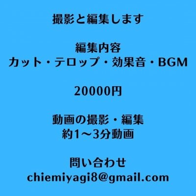 動画を撮って、編集をして、お渡しします。YoutubeやSNSにお使いください。