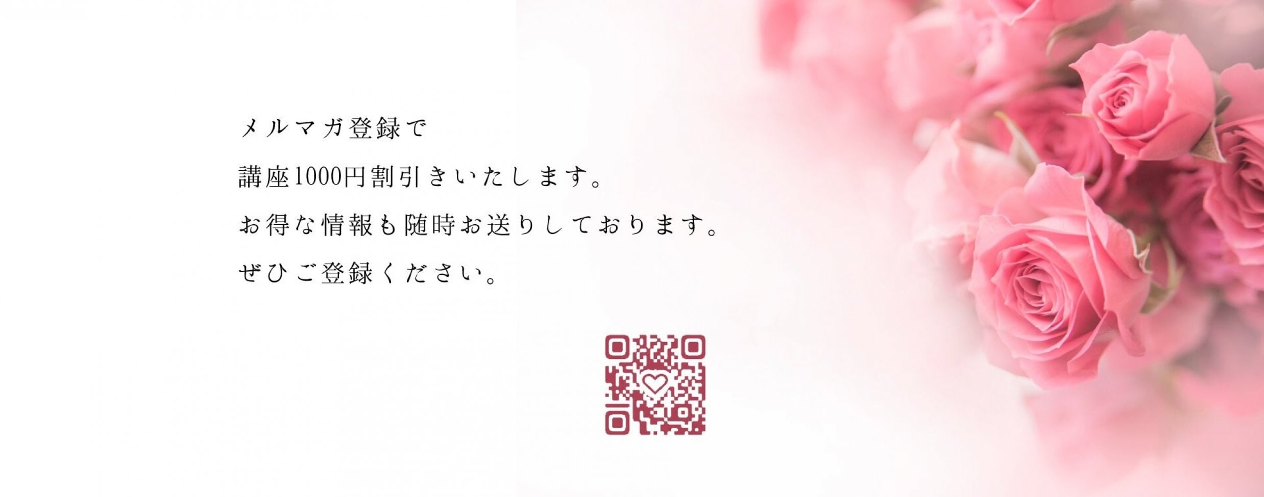| メールマガジン登録 | プリンセスエリーの無料メールマガジンに登録していただいた方へ、プリンセスエリーウェブチケットの講座に使える1000円割引券をプレゼント。 |