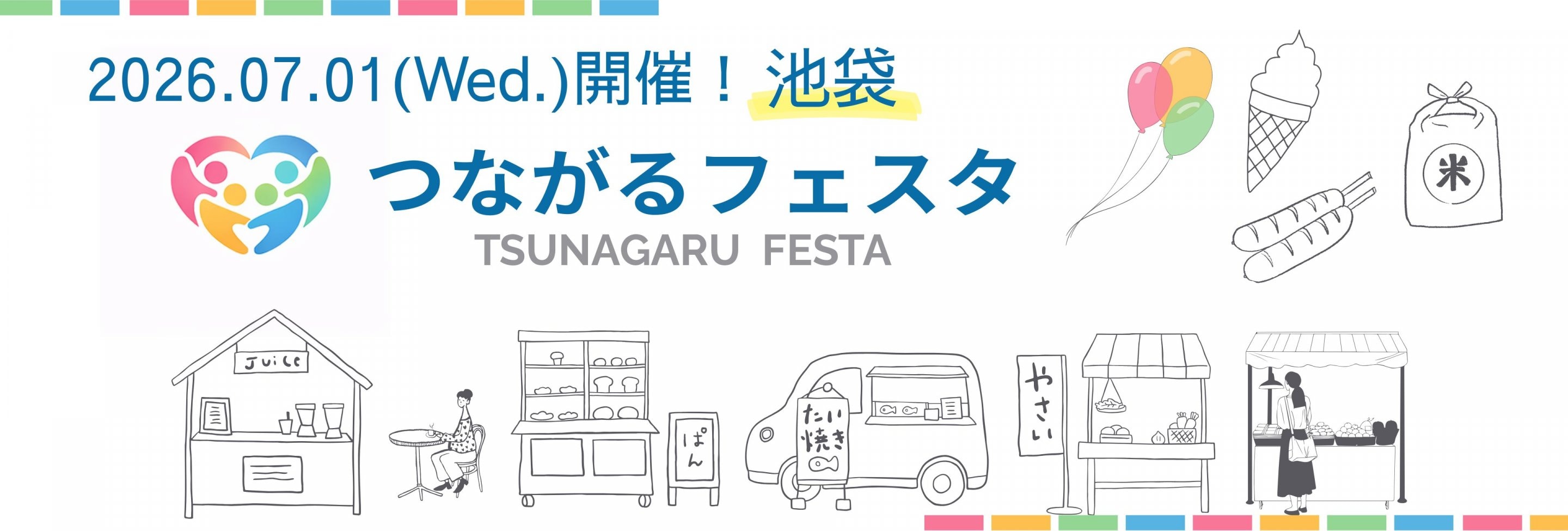 人と人、企業と企業、人と社会、みんながつながる\つながるフェスタ/ 2026年7月1日(火)10:30-16:00 西池袋「イケビズとしま産業振興プラザ」で開催いたします!! 美味しい、楽しい、ほっとする♪『ヒト、モノ、コト』がつながり、出店者、地域の皆様、ご来場者様、みんなで創り楽しむイベントです♪ Instagram https://www.instagram.com/tsunafes/