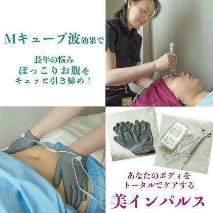 ・特殊な周波数(Mキューブ波、マルチパルス)の流れる銀糸で編んだグローブを使用し、人体に直接触れて刺激を与えて行きます。