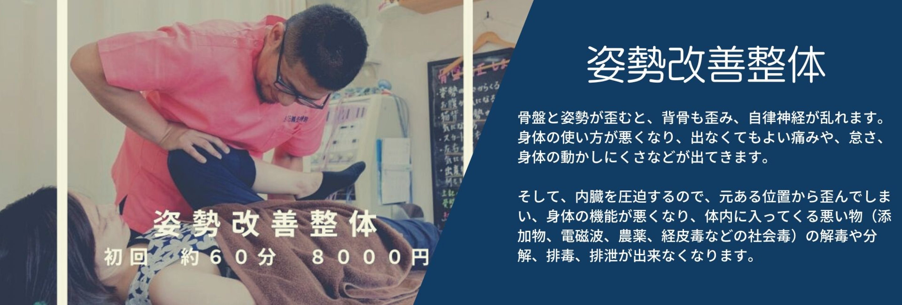 ・骨盤を矯正することで姿勢が良くなり、首や肩のコリが改善