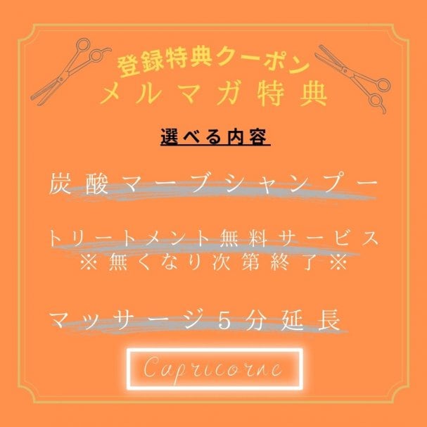 キャプリコルヌは今年で25周年を迎える地域密着型の美容室です。 メルマガに登録いただくと髪の毛に関する知識や商品の最新情報などをお届けします! |