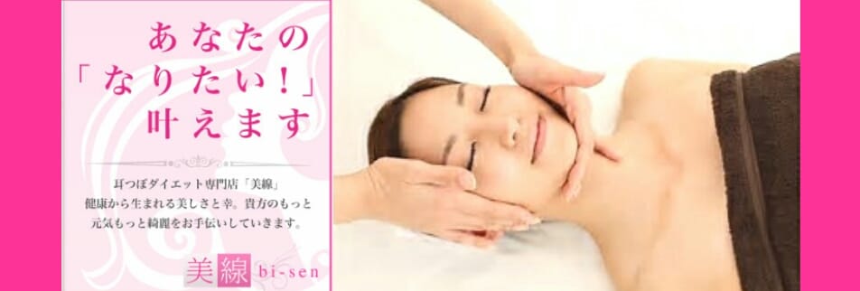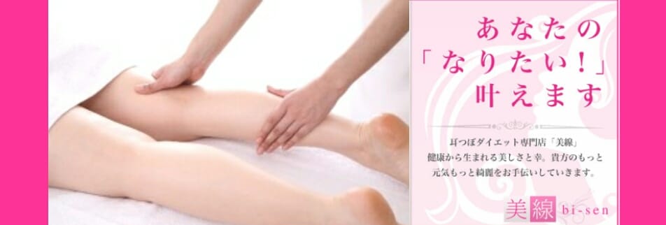 ダイエットサロン美線は、耳つぼダイエットを軸に、お客様の理想のボディへの近道を提供しています。豊富なメニューは美と健康をトータルにサポート、プロの技術が織りなすリラックスと癒しのひと時をお届けします。お客様一人ひとりの悩みに真摯に向き合い、解決に導くカスタマイズケアを提供しています。叶うのは、スリムでキレイな未来。新しい自分に出会い、楽しい変化を感じませんか? ご予約はネット予約より https://reserva.be/bi_sen お問合せは公式LINEより https://lin.ee/SzCycTR