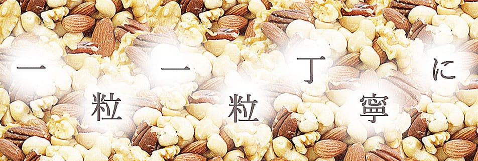 デリケートなナッツ類は春夏秋冬、気温・湿度の微妙な変化をみながら日本国内の職人が焙煎時間を調整しております。