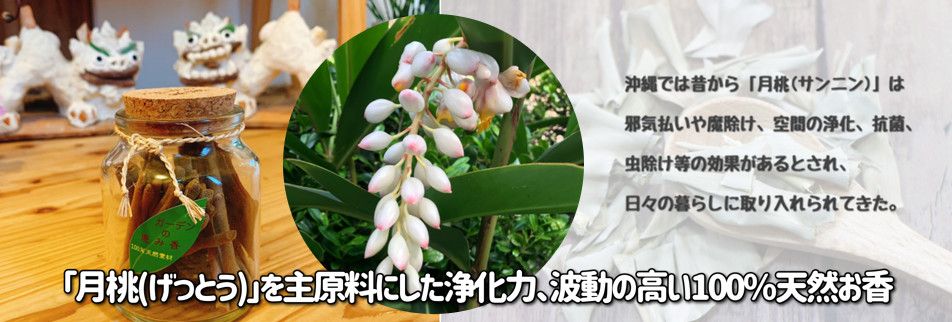 商品をご購入いただいた方に、「月桃」を主原料にした天然素材100%のお香「ガーデンの恵み香(2㌘)」プレゼントさせていただきます。商品と一緒にお付けして発送させていただきます。