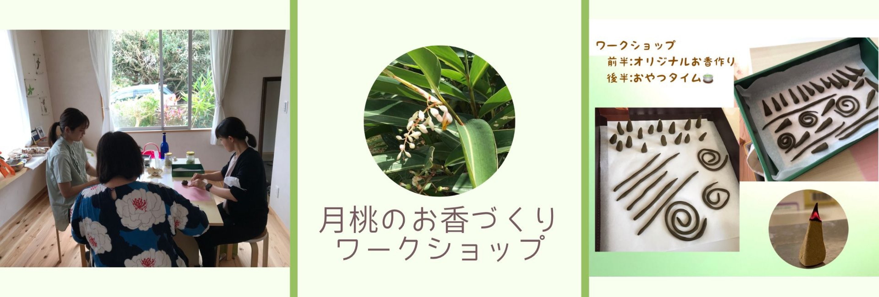 商品の販売はもちろん、月桃のお香作りワークショップを毎月、新月と満月の翌日に開催しています。