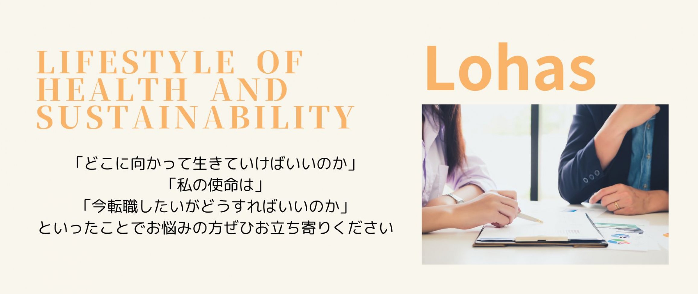 Lohas(ロハス)という言葉をお聞きになったことはありますか? Lifestyle of Health and Sustainability(健康的で持続可能なライフスタイル)の頭文字を取ったものです。 私はこのホームページを通して、「心と身体の健康」特に「こころ」の健康について、ご提案させていただきたいと思っております。 今自分自身が「どこに向かって生きていけばいいのか」、「私の使命は」、 「今転職したいがどうすればいいのか」といったことでお悩みの方、ぜひお立ち寄りください。