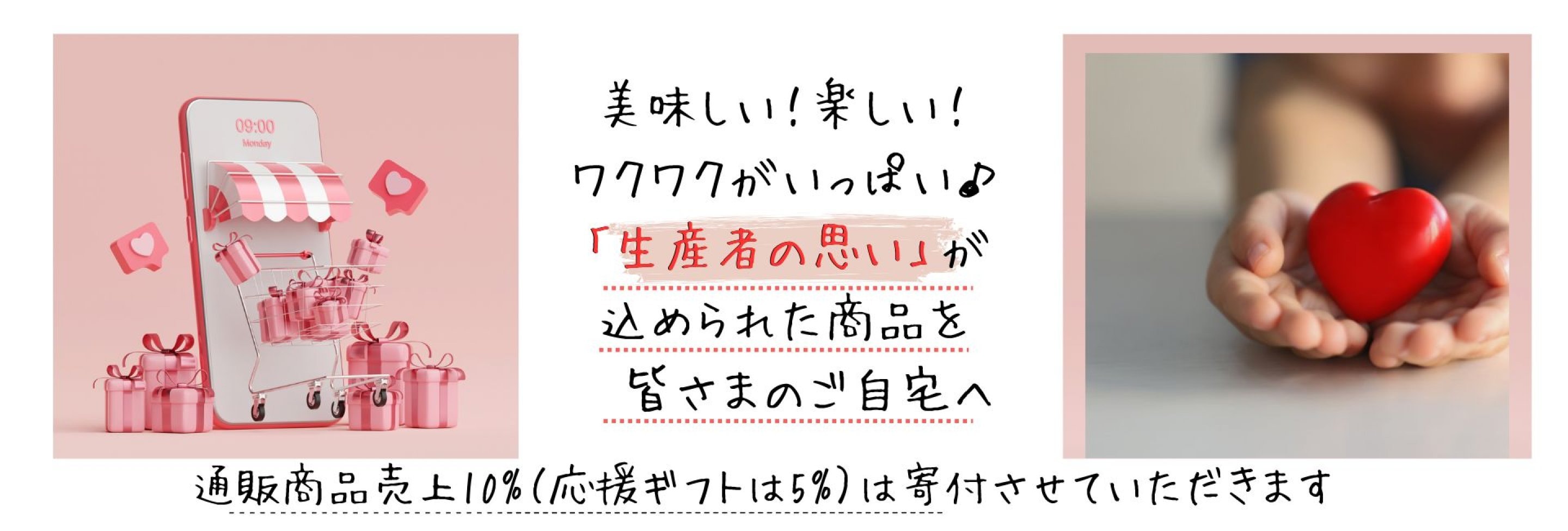 ■通販商品売上10%寄付(※応援ギフトは5%) ■Web募金 を行っております。