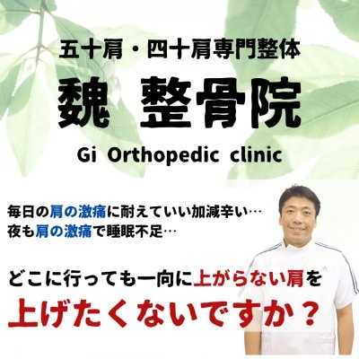 神戸花隈の五十肩・四十肩専門整体【魏整骨院】