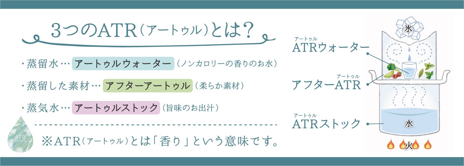 私たちは、これを香る水という意味のATR(アートゥル)ウォーターと名付けました。