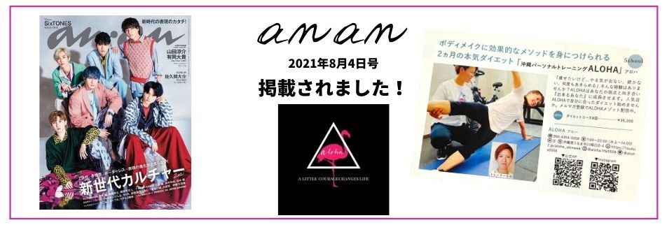 沖縄県うるま市にあるパーソナルトレーニングスタジオのALOHAです♪ 子連れOK!健康維持に力を入れたスタジオです。 ダイエットでお困りの方、健康にお悩みの方、 その他、なんでもご相談ください! ☆営業時間☆ 月〜金:7時〜22時 土:7時〜15時 日:定休日 ALOHA紹介動画はこちら... https://youtu.be/HBIdDC0l7qo お客様Before&After・最新情報はこちら... https://www.instagram.com/alohaa.life7/