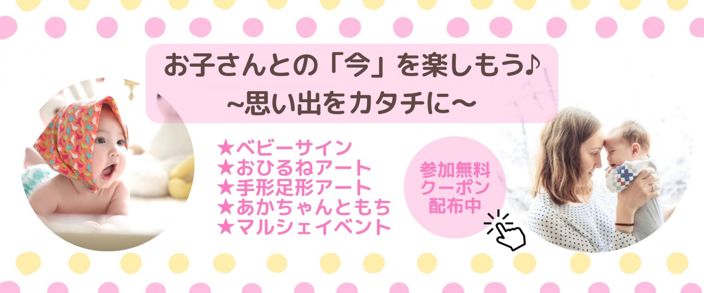 ベビーマッサージ、ベビーサイン、おひるねアート、手形アートなど親子で楽しめる時間を提供しています。