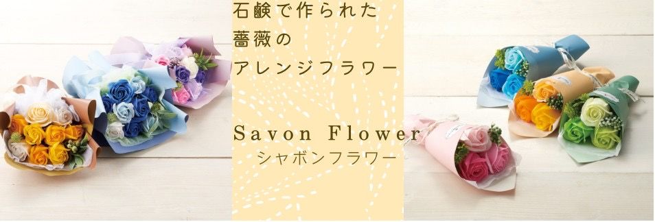 シャボンフラワーとは、石鹸を用いた薔薇の花をアレンジした、生花やドライフラワーとはちがった新しいブーケです。