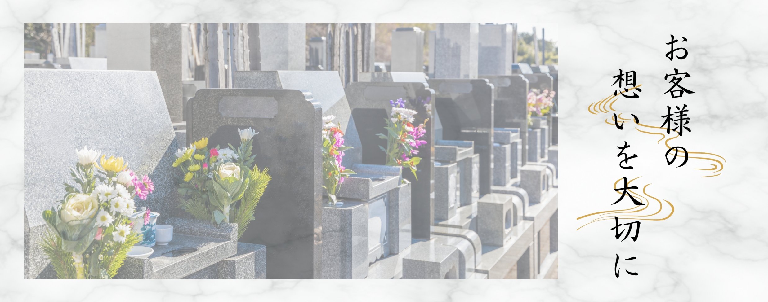 お墓は故人の為の居心地の良い場所。 お客様に納得して頂くため、安心して頂くため、 ご要望を出来るだけ汲み取り、最適な提案をさせて頂きます。 少しでも不安な点や疑問点などがあればお気軽にご相談下さい。 お客様の想いに沿ったお墓をご提供させて頂きます。