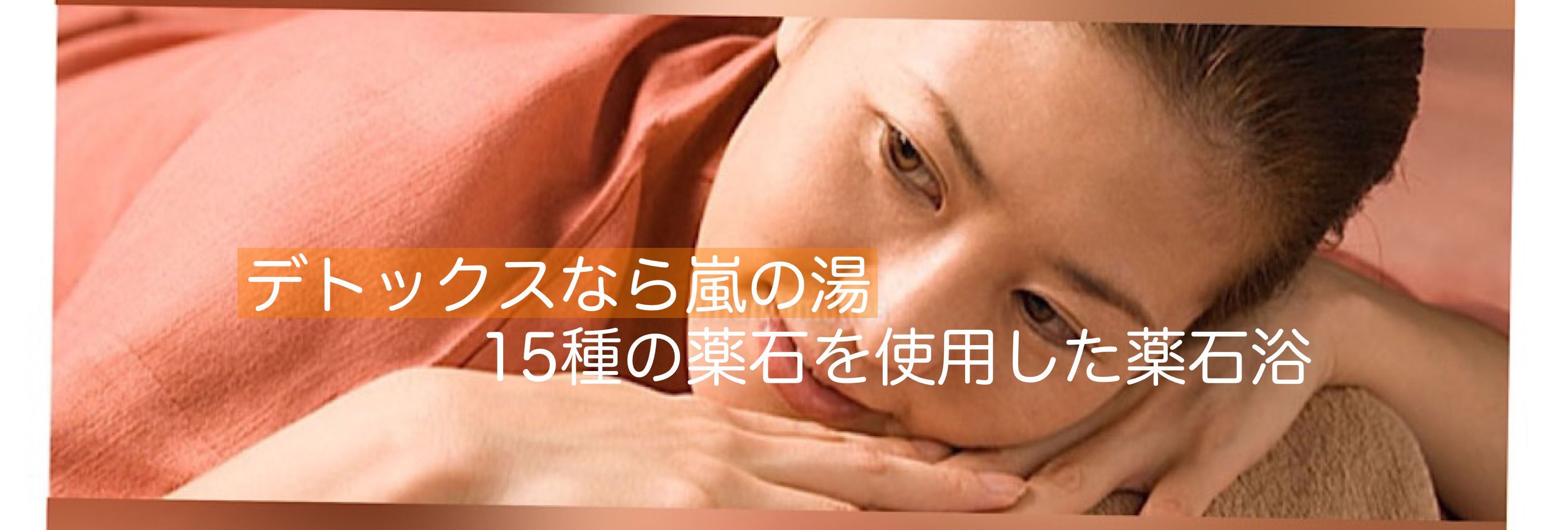 嵐の湯の温室は45℃、湿度は90%に保たれており、室内はミネラルやマイナスイオンで満たされています。厚く敷き詰めた15種類の薬石とミネラル成分がナノミストとなって私たちの体内にダイレクトに作用し、その結果信じられないデトックスが始まりクリニックにも導入されるほど有効な薬石浴の効能を体験できます。何年も苦しんだ痛みからの開放された方もたくさんいらっしゃいます。毛穴が小さくなりきめ細やかなツルツルの潤いのあるしっとり美肌に生まれ変わった!と数多くの体験報告レポートが届いております。是非ご興味持たれた方は当館にお越しください。スタッフ一同心よりお待ちしております。