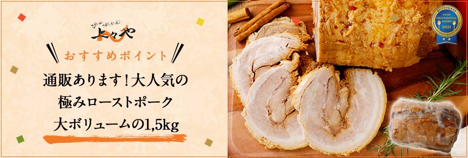その一番人気の厚切り極みチャーシューをご贈答品やお取り寄せグルメとして開発した、1,5㎏の大満足のボリュームの豪快な太巻き【極みローストポーク】がおすすめです!