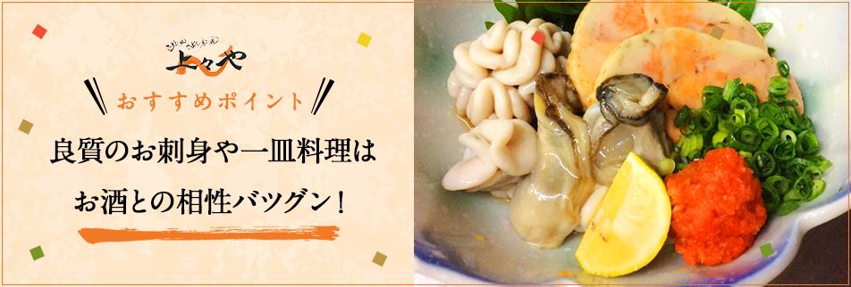 東京のへそ大宮八幡宮の最寄り駅。 渋谷と吉祥寺を結ぶ路線京王井の頭線の西永福駅で創業23年の居酒屋です! 居酒屋として西永福駅前で営む上々や 西永福店は、酒処としてはめずらしく「子供と一緒でも入りやすい」「年を気にせず楽しく呑める」と、様々な世代の方に広くご利用いただくお店です。 ボリュームのあるがっつりメニューから季節のお刺身などお酒のアテになる一皿もあり、どれも料理人の工夫を加えた自信の品です。