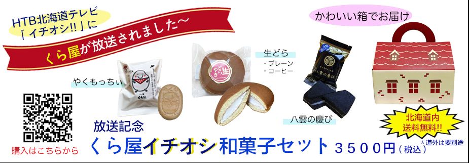 有限会社 くら屋菓子舗 〒049-3105 北海道二海郡八雲町東雲町64−1 【ご連絡先】kuraya_0805@yahoo.co.jp |