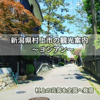 新潟県村上観光ナビ「ヨシアン」は新潟県村上市の観光ガイドならではの村上のとっておきの情報を発信していきます。一年を通しての町屋めぐり、おひな様、お茶つみ、お庭めぐり、夏祭り、秋のびょうぶ祭りなど、グルメ、イベント等、城下町の面影残る歴史散歩、温泉もあり、海、山、鮭が帰ってくる三面川、ちょっと足を伸ばせば笹川流れと1日では周りきれない村上。そしてそこで頑張っている人達をご紹介し「何度も訪れたい村上」に。村上市にいらっしゃる際はお客様のご要望に応じたコースでご案内致します。