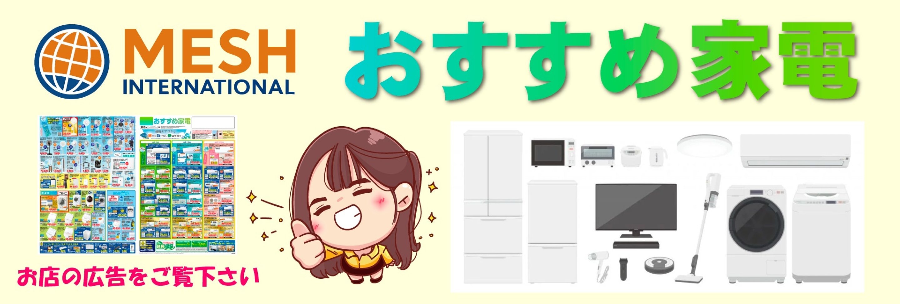 メッシュ・インターナショナル㈱は主に家電製品の販売を行っており、お客様が充実した日常生活を送って頂けるような製品をご提案しております。一般的な家電量販店と同様の製品群を取り扱っていますので、お客様のご要望にきめ細かく対応できます。是非ご相談下さい。