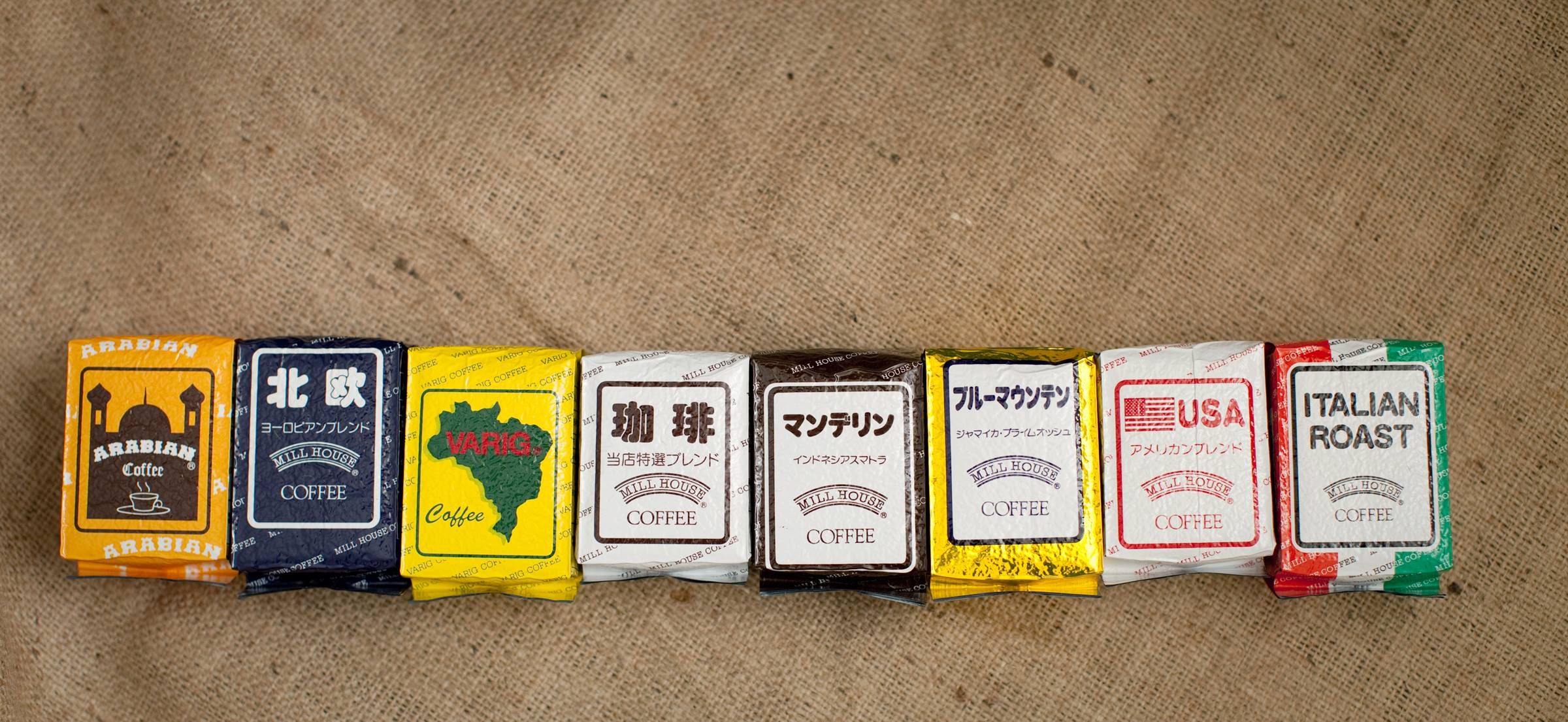 ストレート4種類、ブレンド4種類の計8種類に絞りレギュラーコーヒー(粉)をご用意しております。