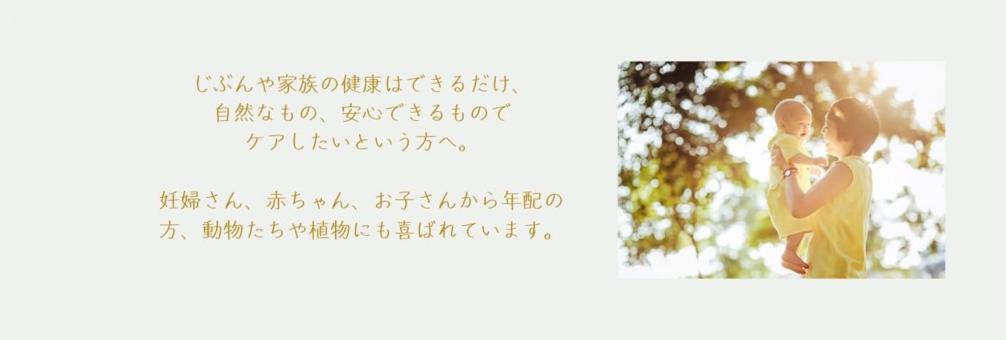 副作用がなく、赤ちゃん、妊婦さん、ご高齢の方、動物に、植物に 安心してお使いいただけます。
