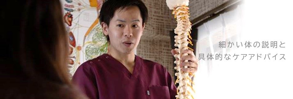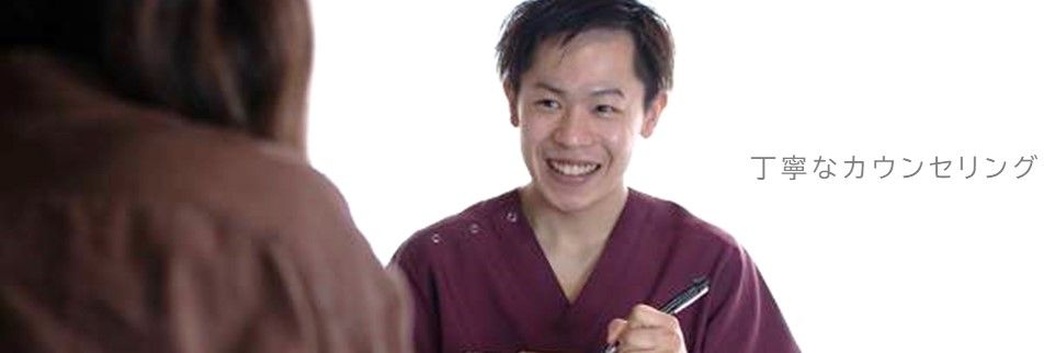 1 問診:身体の状態を確認するために、痛いところや、悩みを聞いていきます。