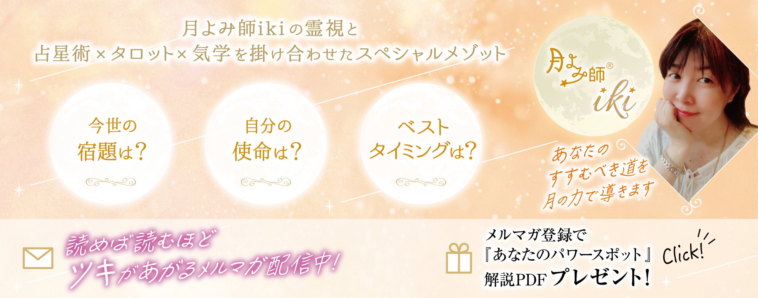 ☆ 読めば読むほどツキが上がる方法は、メルマガから! メルマガ購読でPDFプレゼント! 【一生のお付き合い。あなたのパワースポットはどこ?】 パワースポットっていうけれど、どこに行っても効果は同じ?いいえ。人によって、行くべきパワースポットって違うんです。メルマガ登録をして自分だけのパワースポットを知りましょう❣ ☆気になる方はまずはメルマガ登録 ツキを上げる方法や金運アップの方法、星座別の攻略方法、あなたの生まれ月から見る体の不調の直し方などの情報など配信しております。ご登録よろしくお願いします。 |