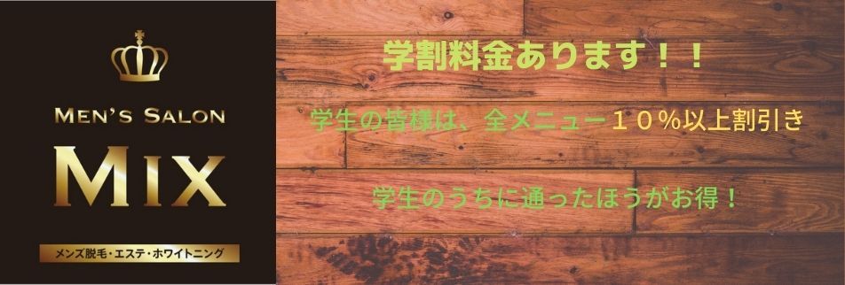 格安メンズ脱毛 学割キャンペーン | Mix(ミックス)でポイ活!!メンズ脱毛・ホワイトニング・セルフエステ
