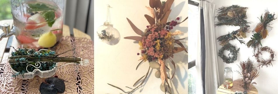 まずはオーストラリアブリザーブドフラワーの花材に触れてもらい自然な温もりや爽やかな香りを感じてもらえたら嬉しいです。玄関や窓際、トイレの飾り棚等における作品をお届けできたらと思います。オーダーメイドの作品創りでは、飾る場所や大きさ、使用するニーズに応えた作品作りも行っていきたいと思いますので様々なご要望をお聞かせ頂けたらと思います。どうぞよろしくお願いします。