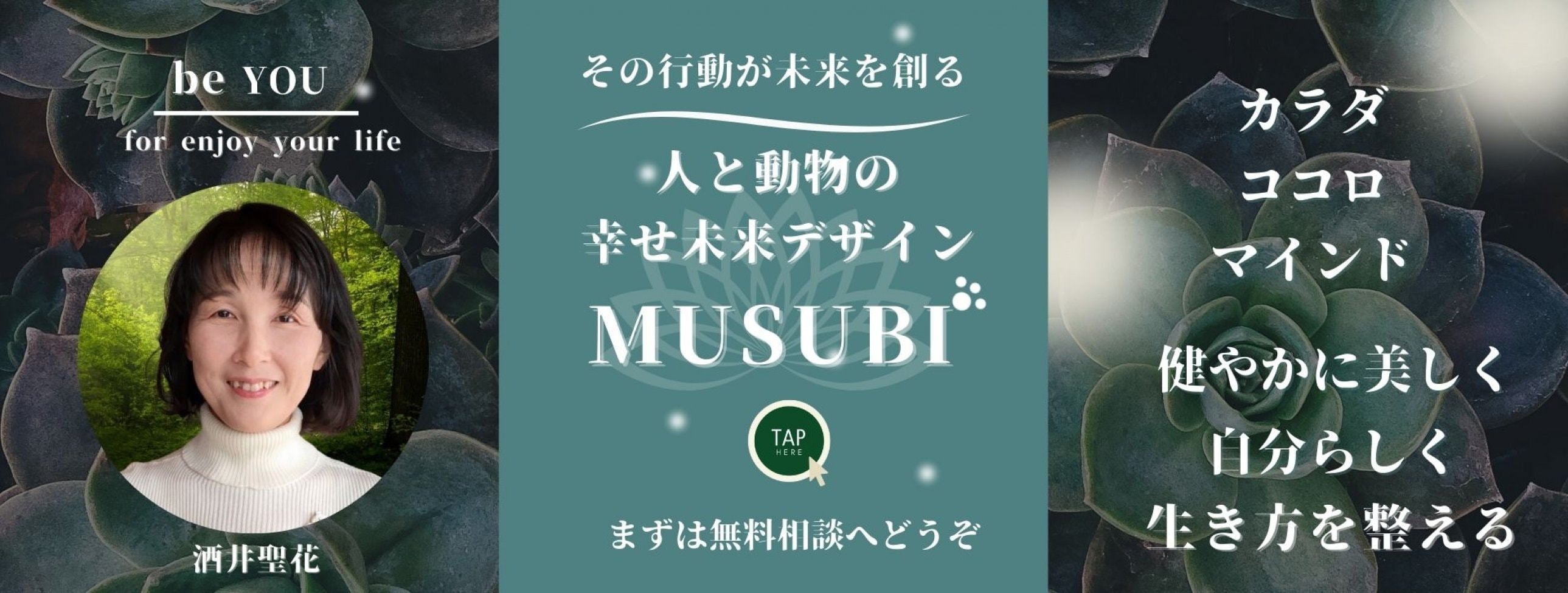 「結局どれが正しいの?」 「私に必要なのはどの方法?」 そんなお悩みを抱えていませんか? ・自分に合った健康法や食事法 ・子どもやペットとの関わり方や育て方 ・理想の未来へ繋がる自己表現や発信のやり方 あらゆるジャンルで膨大な情報が溢れている今、本当に必要なものを選択することが難しくなっています。 MUSUBIでは、あなたの生きる力の源となる「健康とコミュニケーション」通じて、望む未来を共に見つめ、寄り添いながら、健やかに力強く実現していくための具体的ステップの設計とその行動をサポートします。