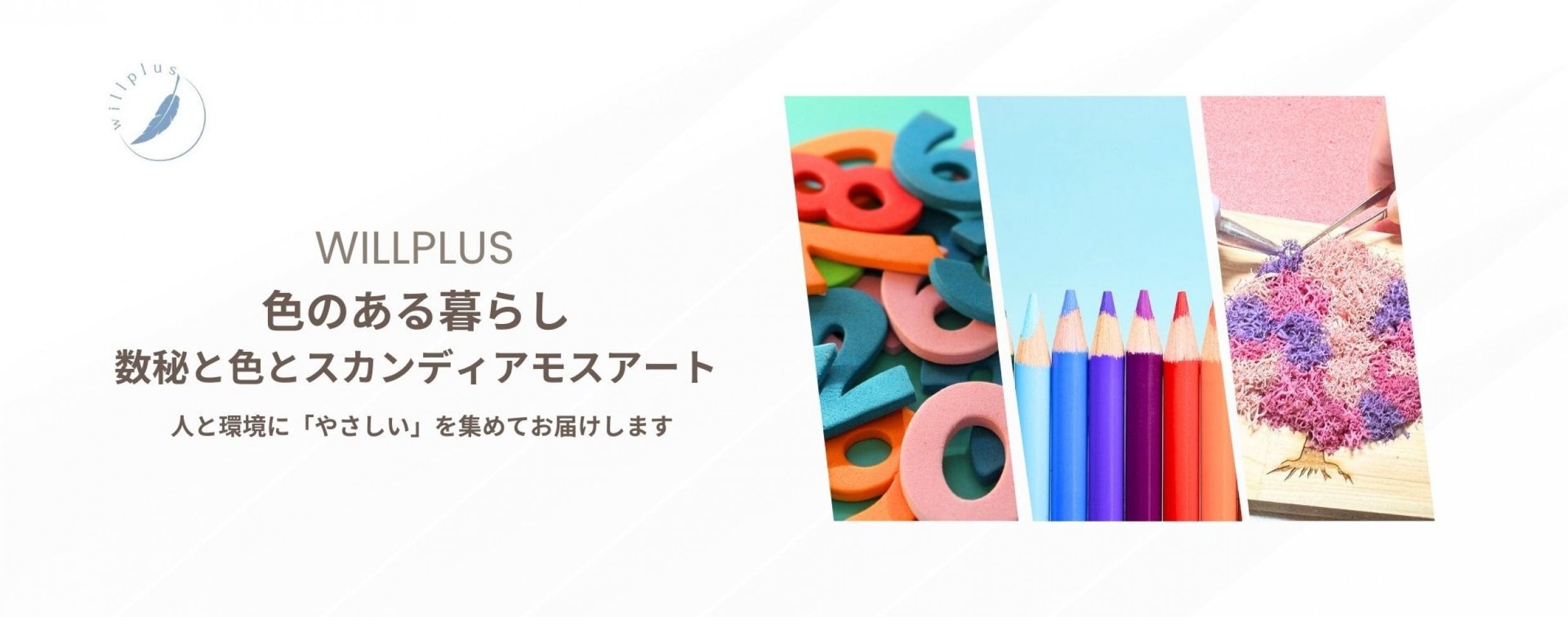 私たちwillplusは、色彩心理を経営戦略に!をコンセプトに、家族で事業を展開しています。家族社員それぞれの個の強みを生かし、デジタル×アナログ(数秘と色とスカンディアモスアート)で、家族も仕事も大事にして人生を豊かに生きるご提案しています。