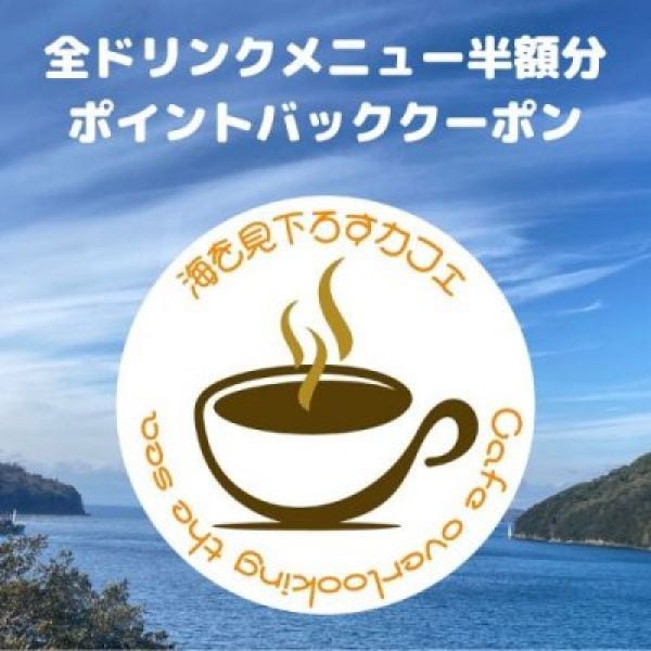 【海を見下ろすカフェ】ドリンク全メニュー半額分ポイントバッククーポン