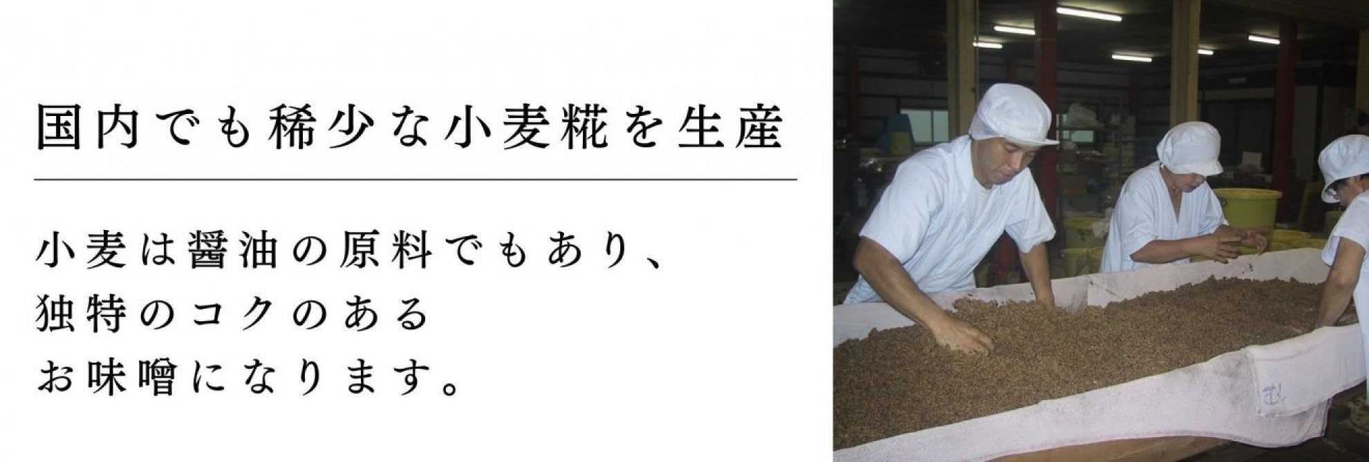 手間を惜しまず時間をかけて丁寧につくることで、機械で作ったものと比べて、甘く発酵能力の高い糀ができます。糀に使う米や小麦は、地元三重県産のものを100%使用しております。