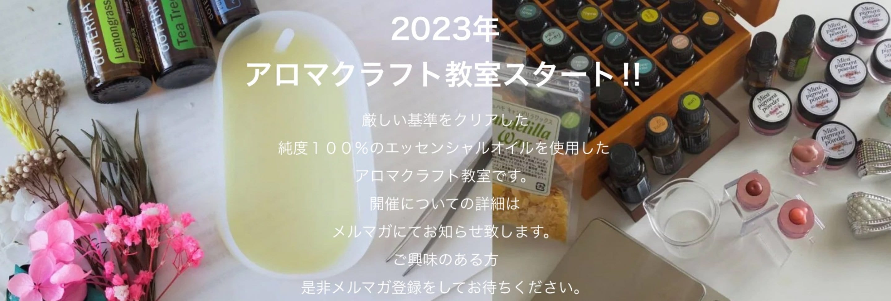 厳しい検査を経て届いた安心、安全な純度100%の最高品質のドテラ社のエッセンシャルオイルを使ってのアロマクラフト教室です。