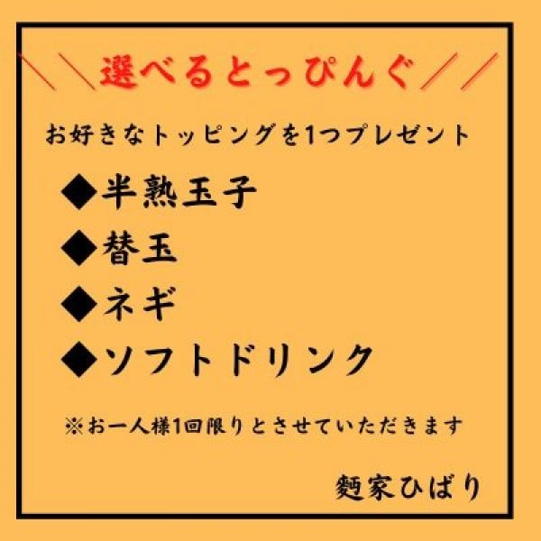 【1回限り!!】選べるトッピングプレゼント!!