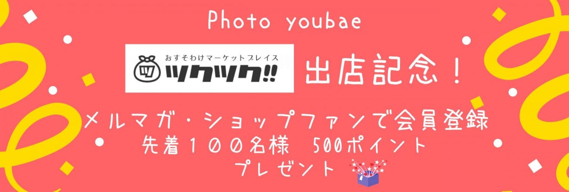 | メールマガジン登録 | Photo youbaeは、今後も楽しい催しを企画しております。イベント・お得な情報等、メールマガジンにてご案内させて頂きます。是非この機会にご登録をお願い致します。 |