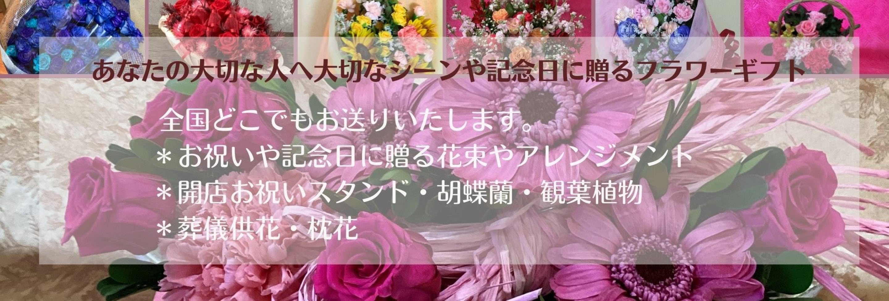 ・花束・アレンジ・シャボンフラワー・プリザーブドフラワー・お祝い花スタンド・花鉢・蘭鉢・観葉植物・供花各種・サカキ(国産)・仏花・墓花・植替え・植え込みなど