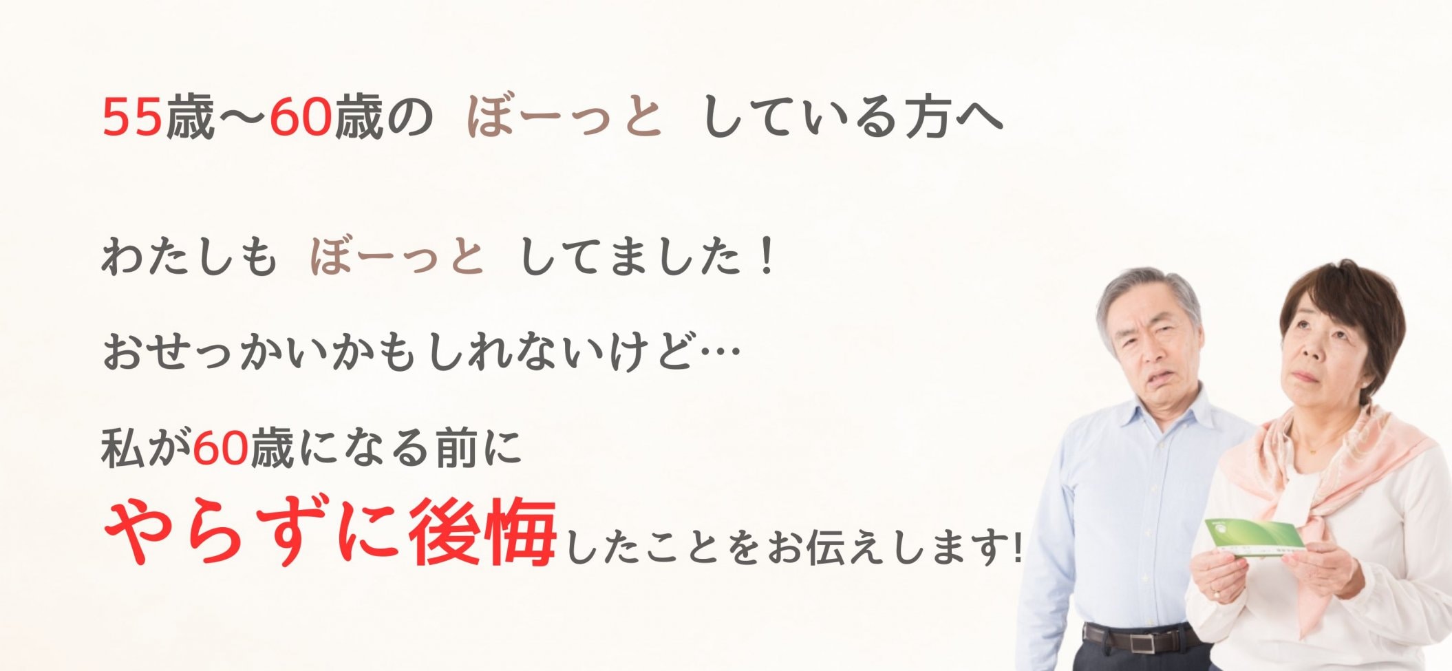 「55歳でも遅くない。今から行動すると未来は大きく変わる!」ということを伝えています。