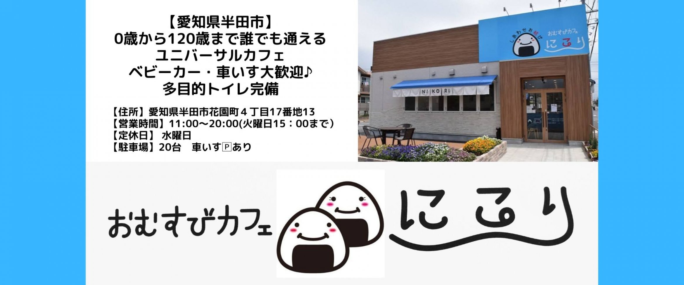 知多半島・半田で子連れランチなら、おむすびカフェにこり https://omusubi-cafe-nikori.jp/ 【住所】愛知県半田市花園町4-17-13 【電話】0569-77-4477 【営業時間】11:00〜18:00 【定休日】 水曜日 🅿20台 ベビーカー・車いす・すべての食事に対応! ▼イベント最新情報はインスタグラム https://www.instagram.com/omusubi_cafe_nikori ▼講演会・執筆・取材依頼はこちら https://x.gd/4komY