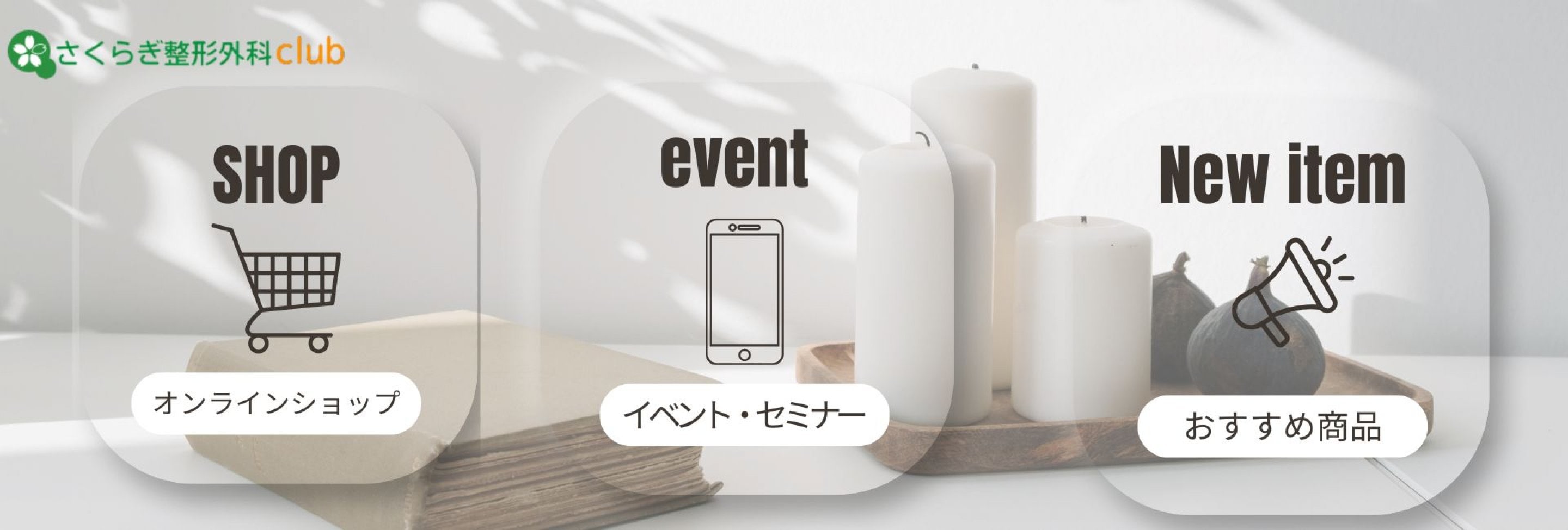 | メールマガジン登録 | さくらぎ整形外科clubでは、医・食・住の専門分野のプロフェッシャルな講師陣による、健やかな健康維持と豊かな暮らし!をテーマに楽しい催しを企画しております。メールマガジンにてご案内させていただきますので、是非この機会にご登録をお願いいたします。 |