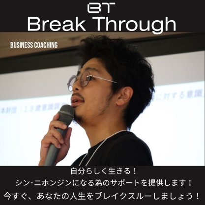 脳科学コーチングの中村格です。 弊社は脳科学に基づいたコーチングにより,ライフサポート・組織改革のサポートを提供します。脳科学コーチングでは,あなたの脳を成功脳に書き換え,自分の人生のゴールに向かって,自分軸で生きていくサポートを行います。組織改革コーチングでは,経営理念の実現に向けて社員一人一人がゴールを設定し,自走してもらいます。その結果自然と業績も向上し、企業全体が成長することを目指します。 ご予約・無料相談はこちら https://break-through.online/contact/