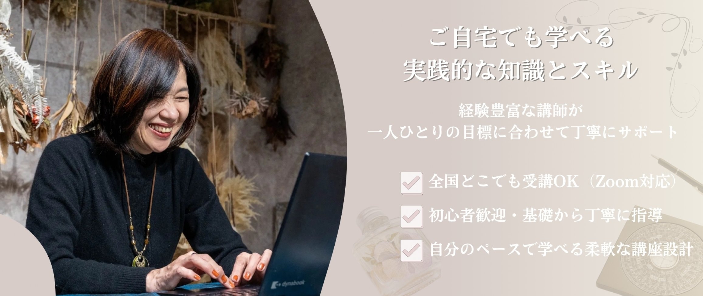 オンラインで全国対応、ビジネスへの応用に特化したカリキュラムもご用意。