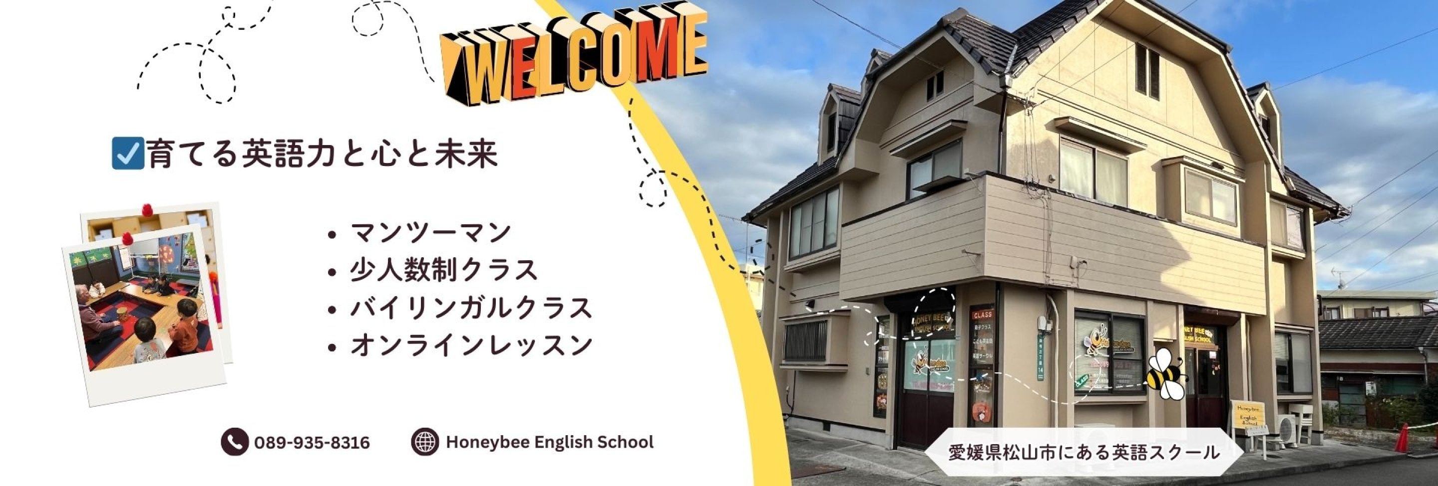 愛媛県松山市畑寺にある英語スクールです。 アメリカ人と日本人の国際カップルが教えています。 マンツーマンと少人数制クラス、そしてバイリンガルクラスがあり、子どもから大人まで学べます。 通常の4技能(聞く・話す・読む・書く)を学ぶレッスンの他、学校のお勉強、英検、スピーチコンテスト、英語キャンプ、ショートステイや留学などもサポートしております。 お気軽にご相談ください。 HP: https://r.goope.jp/honeybee-school/