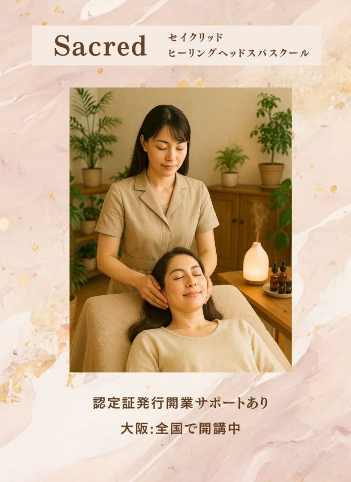 大阪ヘッドスパスクール・ローマピンク施術サロン「セイクリッド・トータルビューティーサロン」は究極の癒しを追求したドライヘッドスパスクールと最新メラニンケアの「ローマピンク」施術サロンです。未経験からヘッドスパセラピストとインストラクターの資格が同時に取得できるコースが人気!無料のアフターサポートやサロン開業支援有。 ご予約&お問合せ ◆インスタ:https://www.instagram.com/sacred0707