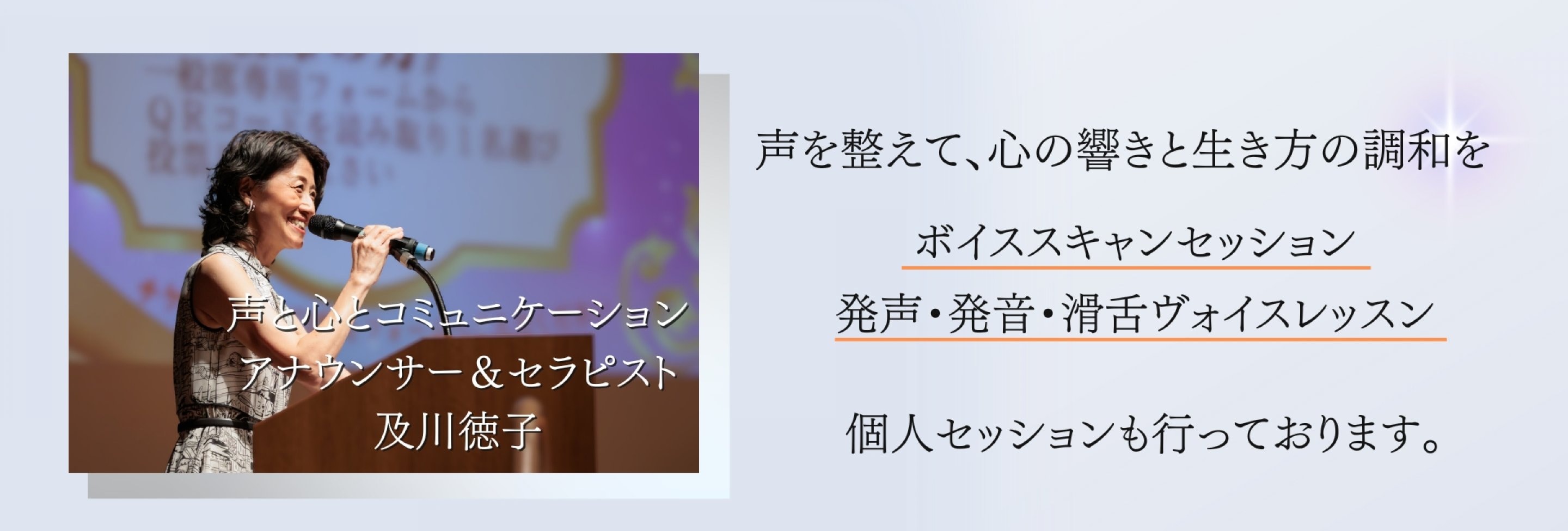 | ショップ名 | 声と心とコミュニケーション アナウンサー&セラピスト 及川徳子 当店の総合ページへ |