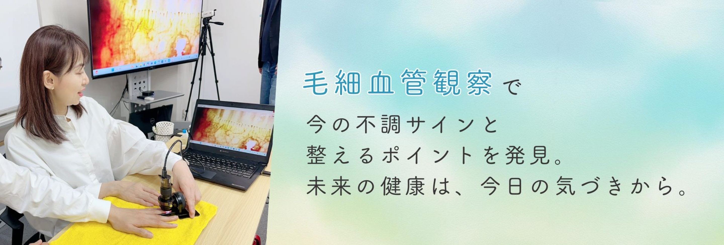 毛細血管という生命のミクロな世界に着目し、「今のあなた」を映すリアルなサインを可視化します。