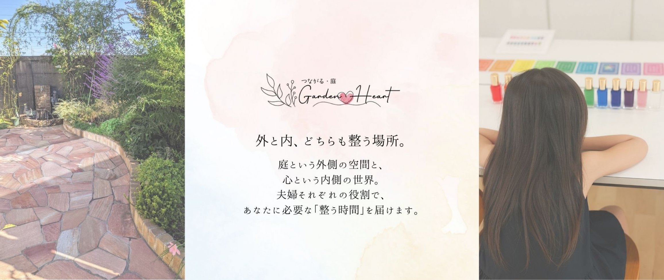 「つながる・庭 〜Garden & Heart〜」は、造園で暮らしを整え、心のセッションで内側を整える、自然と人、心と暮らしをつなぐ夫婦コラボのショップです。私たちは、庭という“外側の空間”と、心という“内側の世界”、どちらも健やかに整えていくことを大切にしています。造園を通して、暮らしに安心と調和を。ブリーズアンジェリックのセッションを通して、心に気づきとやさしさを。人と自然、人と人、心と暮らしがつながる場所として、今のあなたに必要な「整う時間」をお届けします。